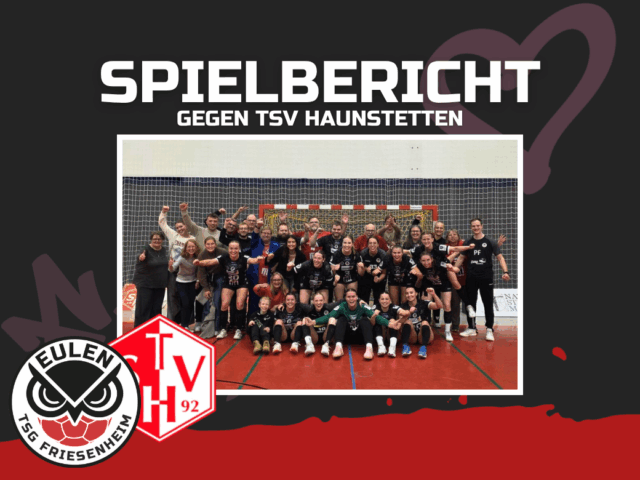 Zum zweiten Spielabschnitt meldete sich Jana Heidger wieder zurück und nutzte die Überzahl zum 16:18. In der 35. Minute nutzte Tabea Luickx, die bis dahin auf der ungewohnten halbrechten Position einen schweren Stand hatte, den Positionswechsel auf Halblinks. Sie setzte sich herrlich durch und erhöhte auf 16:19. Nach dem 18:21 durch unsere Linksaußen Mona Kuczaty taten sich die Eulenfrauen in der Offensive schwer. Juli Wolf zeigte zwei Paraden, konnte aber den Anschlusstreffer von Sabrina Fischer in der 42. Minute zum 20:21 nicht verhindern. Doch in der Folge war unsere Defensive nicht mehr zu überwinden, Haunstetten wurde zu technischen Fehlern gezwungen und Rebecca Brecht per Siebenmeter, Johanna Werthmann aus fast unmöglicher Position von Rechtsaußen sowie Mona Kuczaty über die erste Welle brachten die TSG Friesenheim erstmals mit vier Toren in Führung (20:24, 45. Minute). Zwei weitere Tore der überragenden Johanna Werthmann zum 21:26 sorgten für die Auszeit des TSV Haunstetten, in der die mitgereisten Eulen-Fans ihr Team lautstark feierten. Haunstetten gab sich nicht auf, kam nochmals auf 25:28 heran und hatte zudem in Überzahl (Charlotte Lohr hatte eine Zeitstrafe erhalten) die Chance weiter zu verkürzen. Doch auch in dieser Situation behielten die Eulenfrauen den Überblick, trafen selbst, holten ein Offensiv-Foul heraus und zogen eine Zweiminutenstrafe gegen die Gastgeberinnen. Admira Zvekic mit einem schönen Heber von Rechtsaußen und Mona Kuczaty nach Parade und Traumpass von Juli Wolf entschieden die Partie drei Minuten vor Schluss (26:31). Marie Prokop konnte noch etwas Ergebniskosmetik betreiben, am verdienten Auswärtssieg unserer Damen änderte dies aber nichts mehr. Mit 29:33 gelang die Revanche für die beiden Niederlagen der Vorsaison mit einer absoluten Willensleistung aller Spielerinnen.